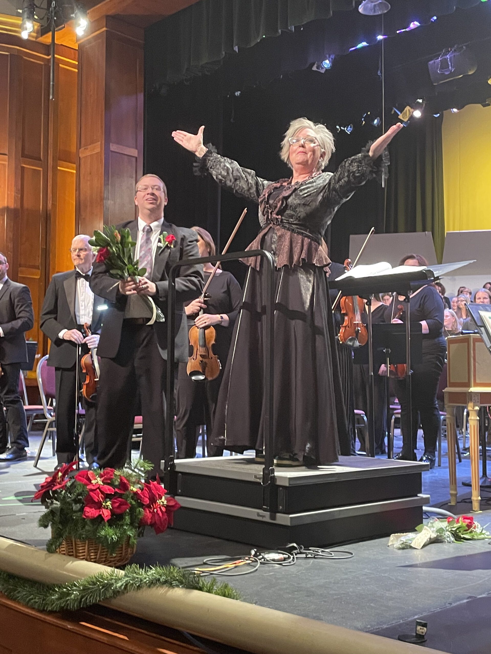 One of the current cellists remembers a particularly vivid performance. Leah Brown was expecting her fifth child in January and started having twinges during the December concert in 1998. She finished the concert and had a baby boy named Calvin about 1 AM. Friends teased her that his name should be Hal for the “Hallelujah” chorus. Traditionally, the audience stands for this rousing chorus.