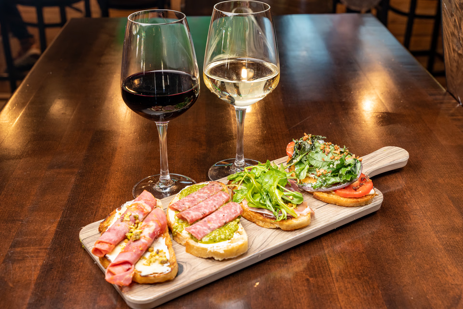 On a recent visit, the approach was simple and familiar to any seasoned foodie: ordering a mix of favorites, a bruschetta flight, a salad, a pizza, and a sandwich, then sharing everything at the table. It’s a personal preference rather than a prescribed way to dine, but one that makes it easy to taste a broader cross-section of the menu in a single visit.