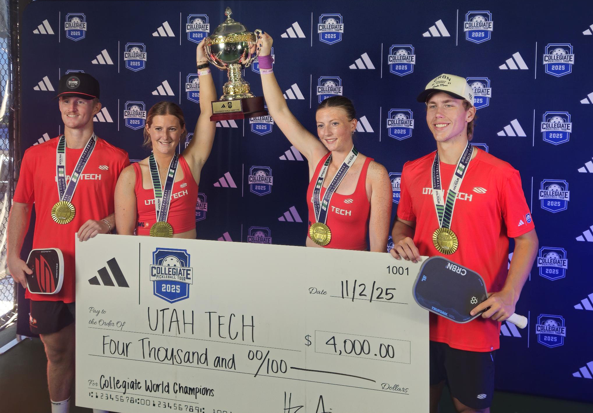 ST. GEORGE, Utah – Competing in the first international event of its kind, Utah Tech University club pickleball team recently made history as the first collegiate world champions.