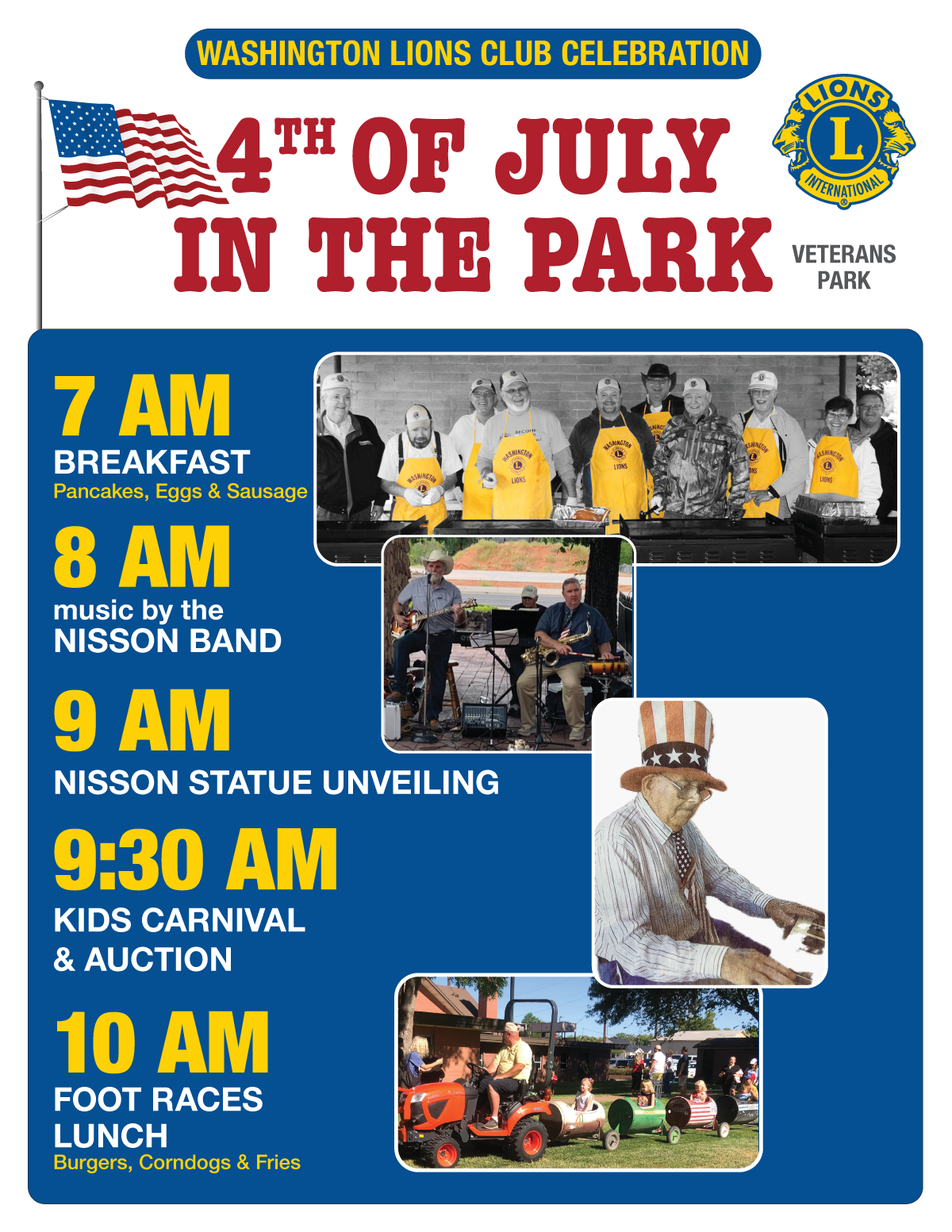 This year’s 4th of July in the Park Celebration promises to be an unforgettable tribute to community spirit and hometown pride. The Washington City Lions Club invites all to Veterans Park on Friday, July 4, for a day filled with family fun and heartfelt honors—including the unveiling of a new statue dedicated to beloved local leader Quentin Alexander Nisson, affectionately known as “Mr. Washington.”
